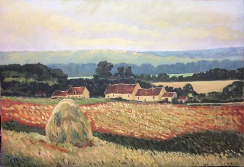 D'après une toile de Monet "Une meule près de Giverny : Meule, champ et vieilles maisons "