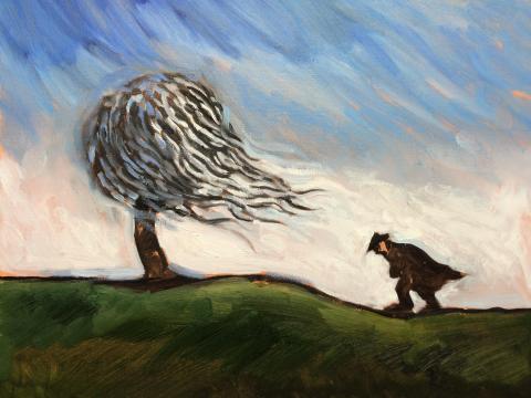 Petite toile qui a commencé comme un jeu. Sa revendication expressioninste a fini par me la faire prendre au sérieux.