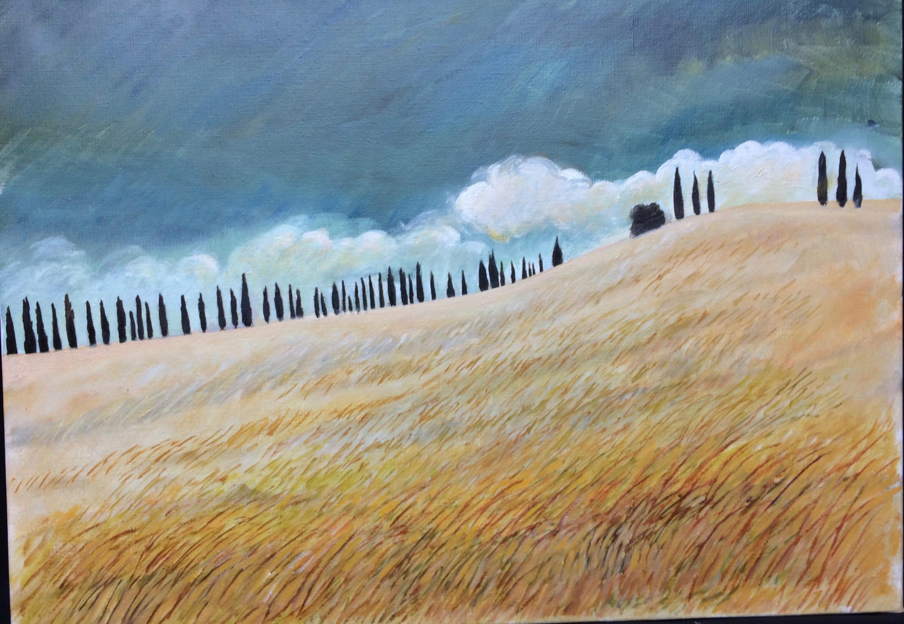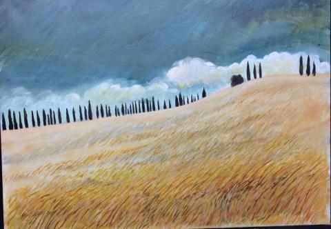 Via Francigena 3 - Alignement de cyprès ciel d'orage -