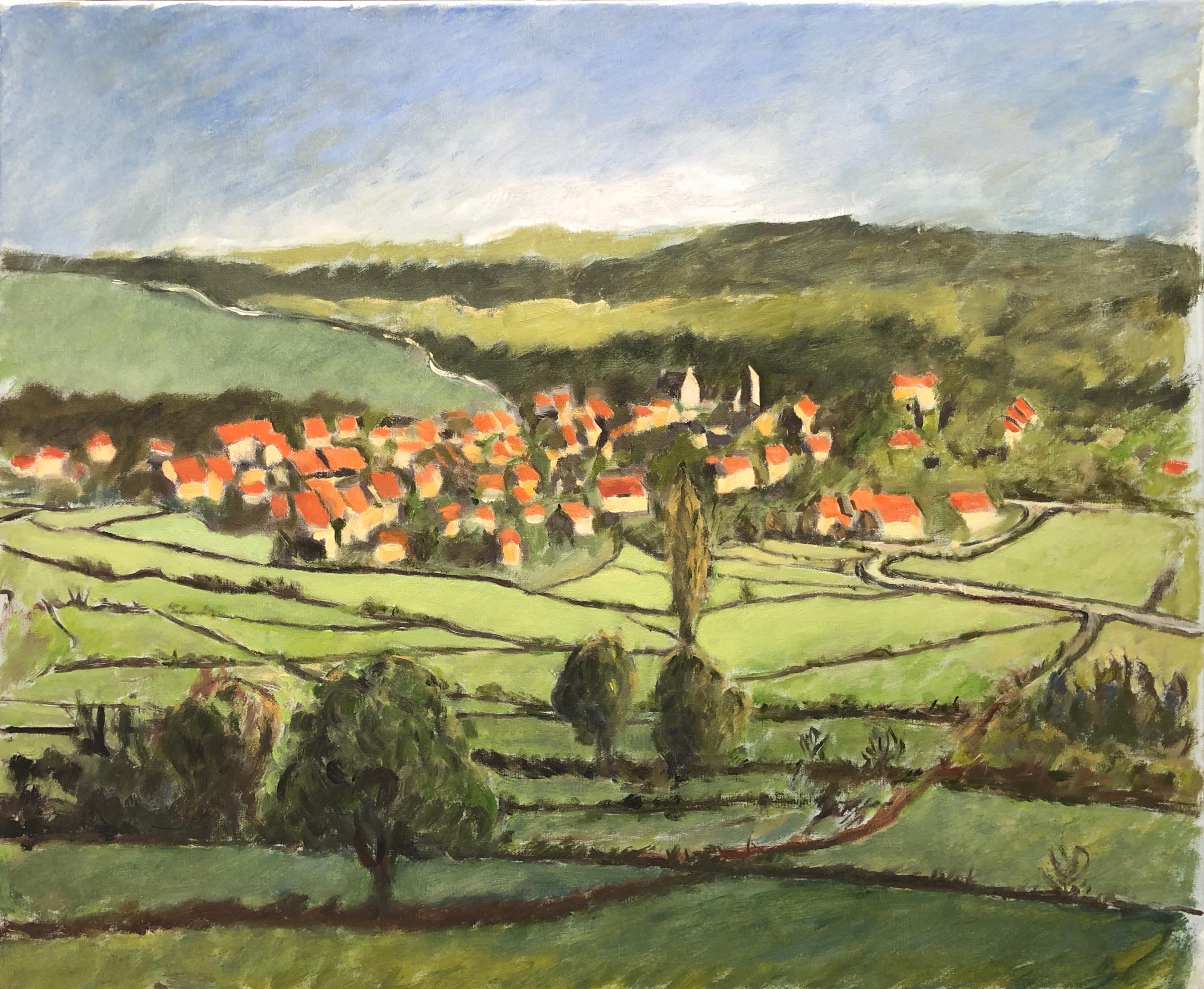 Vue générale du village de Fley au printemps (en descendant de Bissy-sur-Fley).
