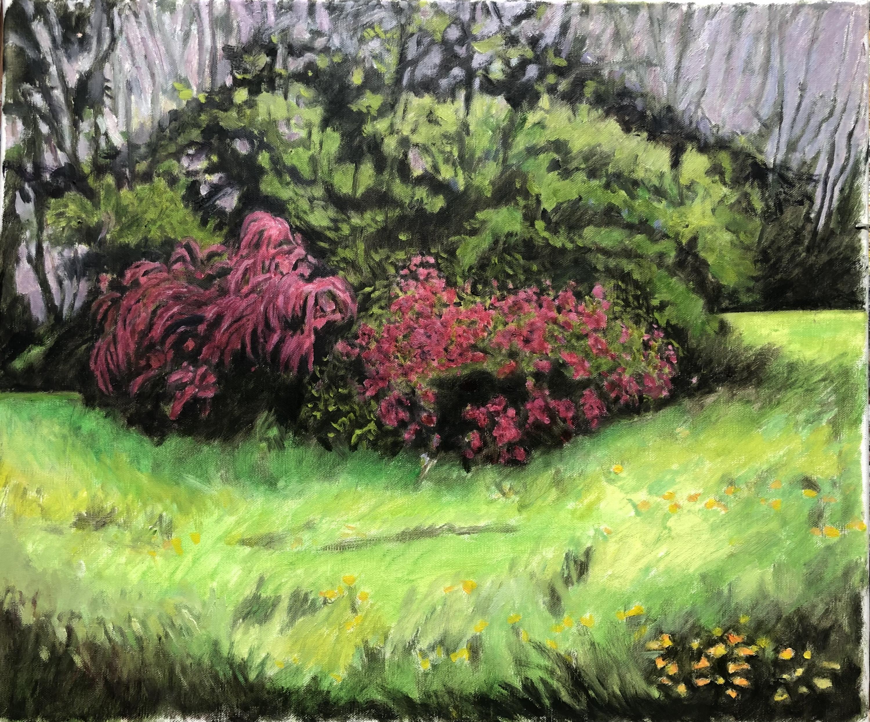 Par opposition à la toile précédente avec son éclairage ensoleillé, là j'ai essayé un temps plus sombre comme avant ou après la pluie.