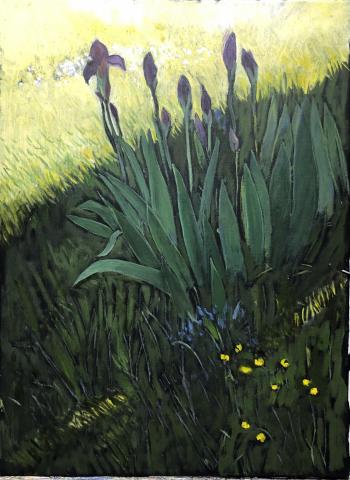 J'ai aimé ces quelques boutons d'iris, vestiges d'un ancien jardin, noyés dans l'ombre, en bordure d'une zone violemment éclairée.