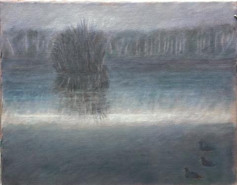 Outre l'effet brouillard j'ai voulu peindre la vapeur qui monte de mal zone éclairée. Moi je la vois, et vous ?