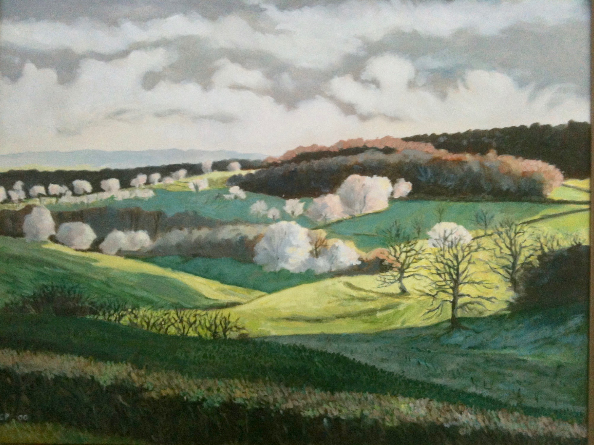 Paysage de Villeneuve-en-Montagne 71, avec cerisiers en fleurs