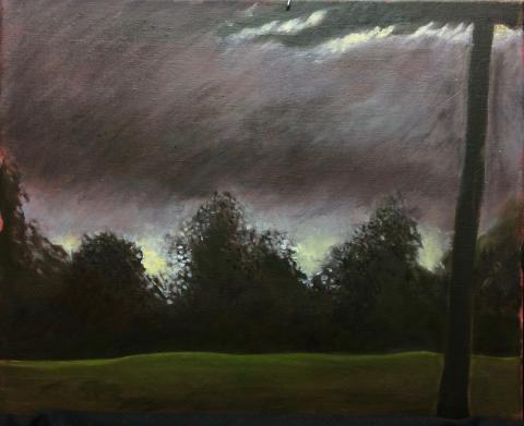 D'après un dessin de Seurat au crayon Comté (silh. arbres, grand tronc à droite)