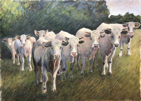 Charolais curieux début du jour - Rimont Fley 71
