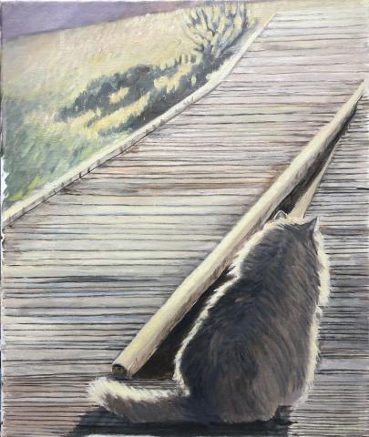 La lumière de début de matinée, associée à la fourrure de l'animal justifiait la photo, puis la toile.