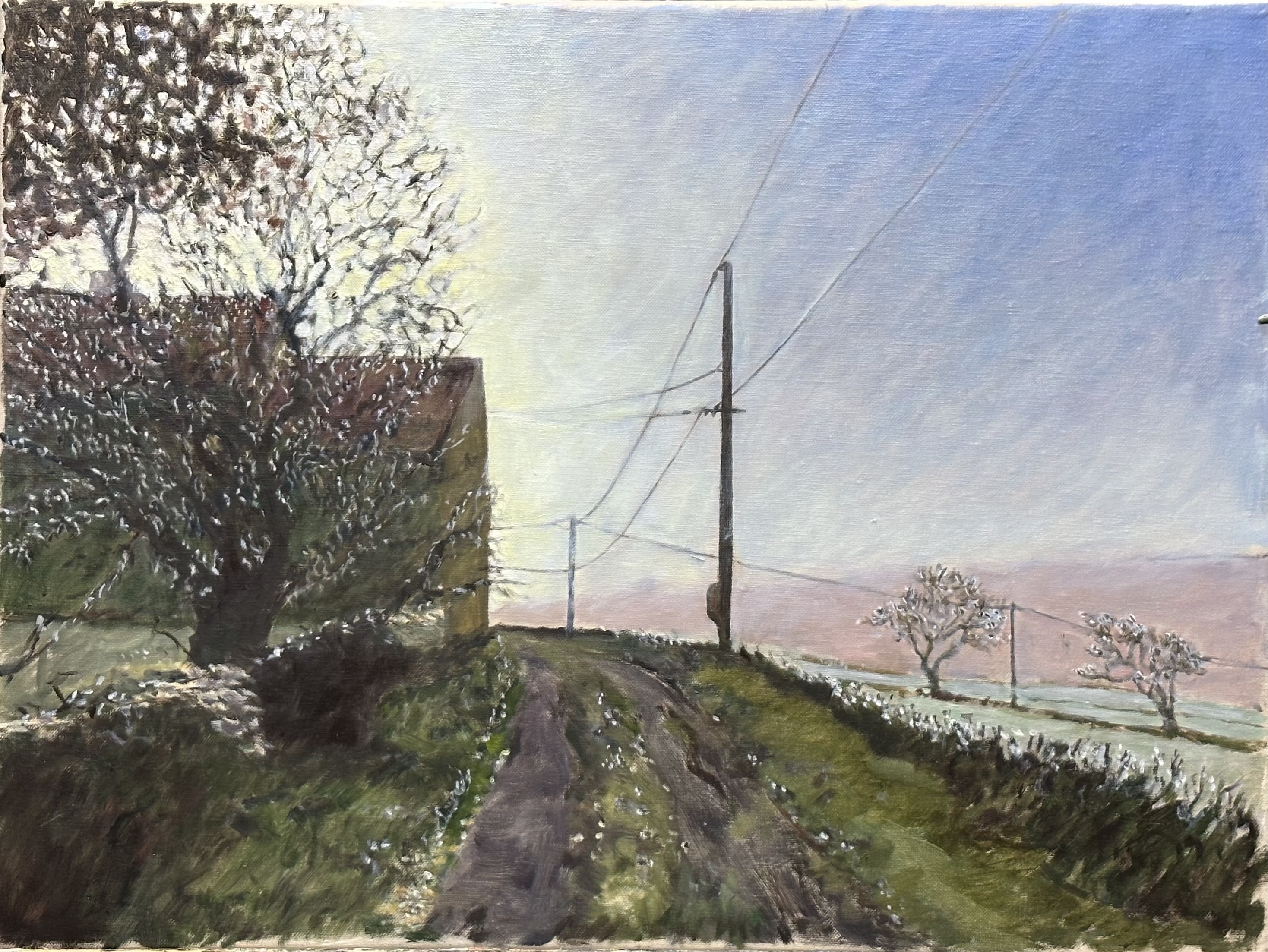 Tentative de traduire : soleil d'hiver, brouillard qui se lève et contre jour.
