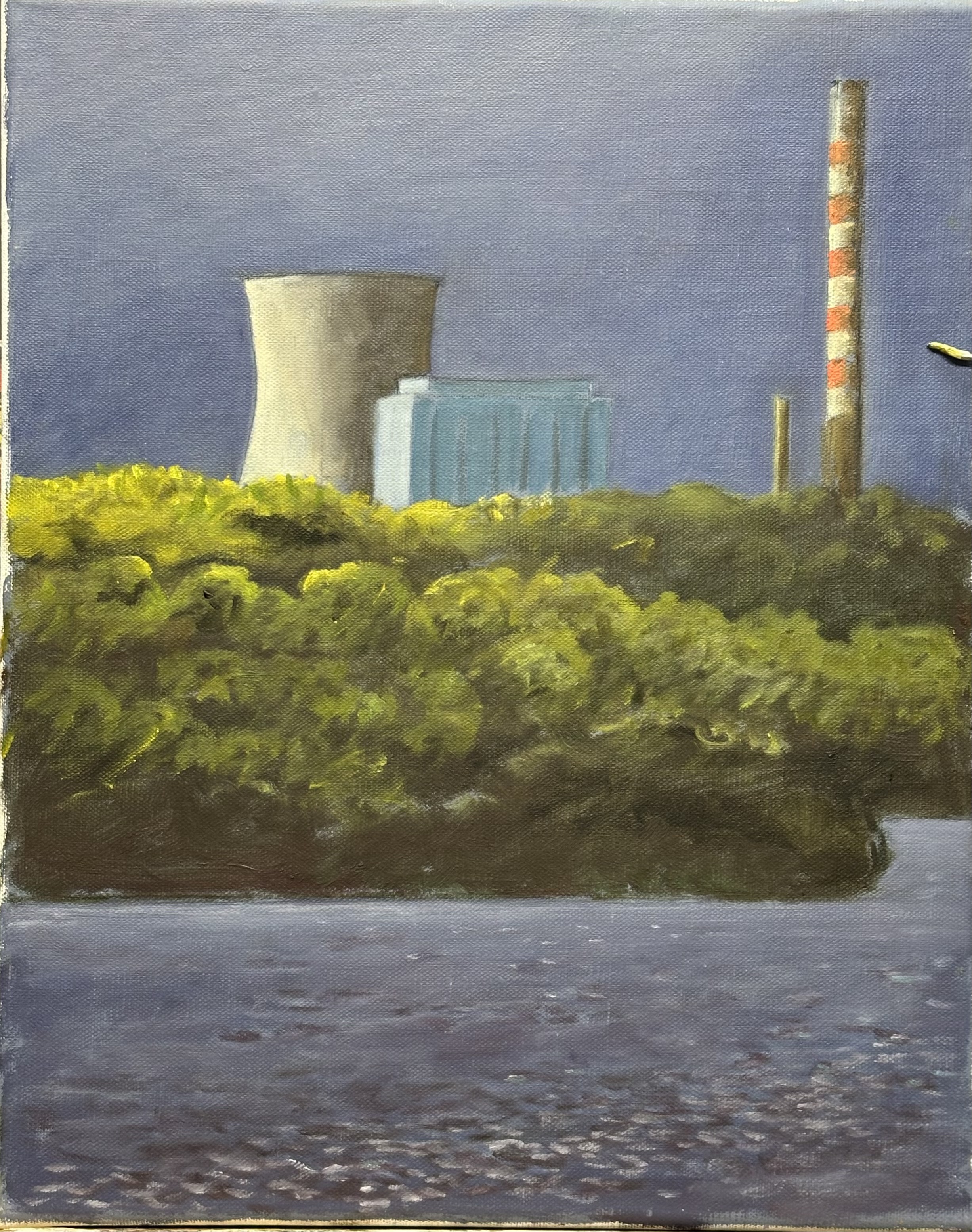 Je suis assez âgé pour me souvenir de sa construction autour de 1966. A l'époque je l'avais souvent photographiée, mais depuis jamais peinte. Ce qui est drôle la toile à peine terminée, j'apprenais que la centrale allait être foudroyée. Elle l'a été.