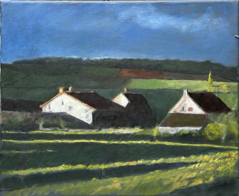 J'ai aimé ces trois pignons blancs dans cette campagne peu ensoleillée.