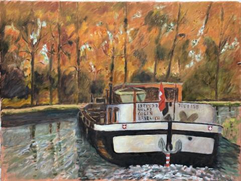 J'ai pris cette photo dans les années 80. Ce qui m'avait amusé à l'époque était ce "curieux" drapeau Suisse. Rien de curieux  le Rhin qui passe à Bâle.